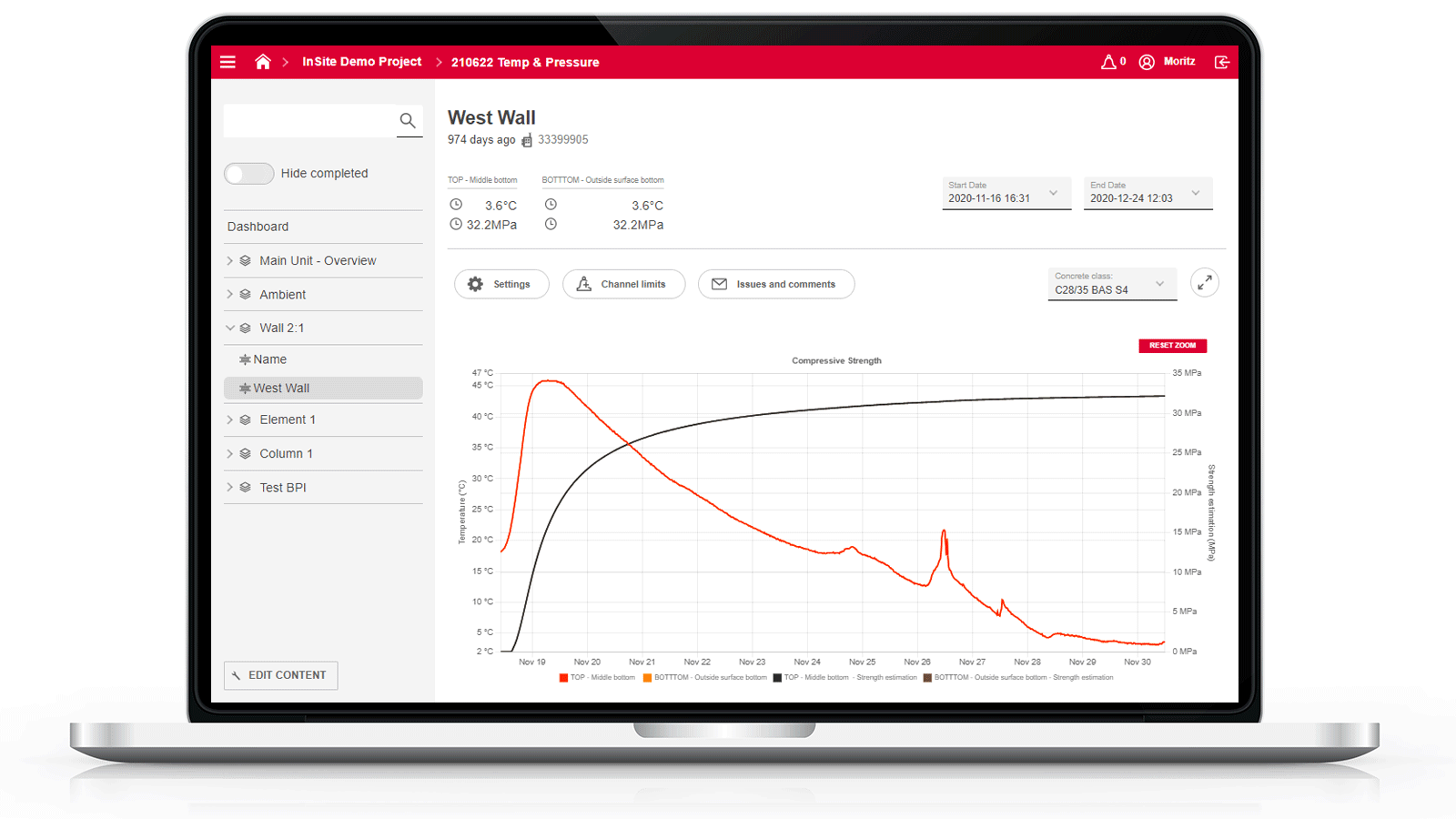 Analyze in real time the temperature and strength development of the concrete in the web app - on your smartphone or PC.