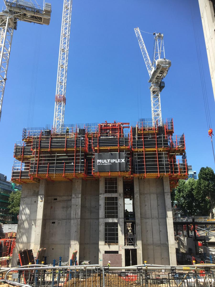Coffrage léger pour un travail indépendant de la grue; facilement reconnaissable à son revêtement en poudre jaune