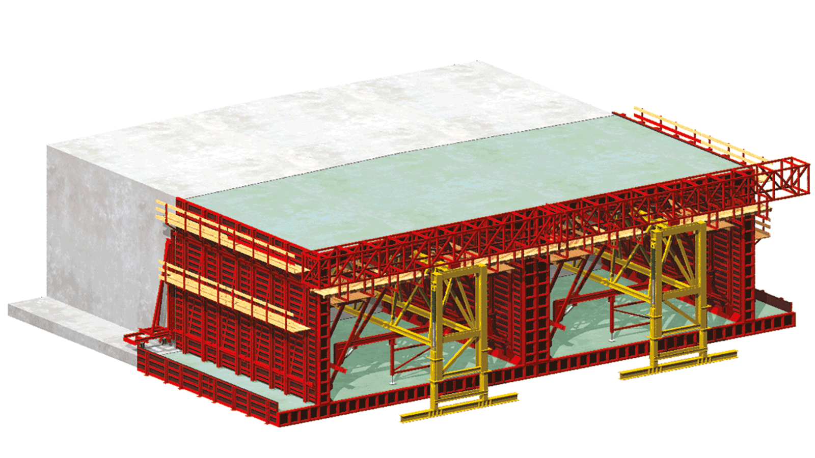 Des opérations rapidesDes opérations de coffrage et de décoffrage simples et un positionnement aisé du chariot de coffrage, ainsi que des options flexibles pour les procédures de déplacement. Le portique peut être entraîné hydrauliquement ou électriquement pour des processus de construction économiques.